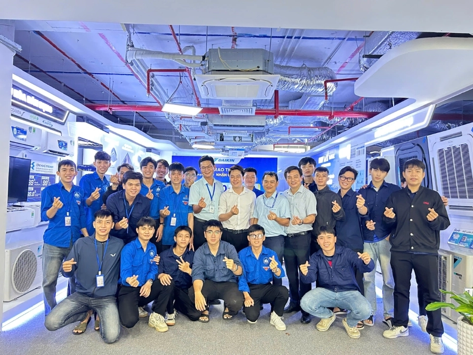 Ngày 24/10/2025, Trung tâm Hỗ trợ việc làm và Khởi nghiệp phối hợp với Khoa Cơ khí, Trường Đại học Nha Trang đã tổ chức cho tân sinh viên lớp 67.CNNL tham quan, học tập thực tế tại Daikin Việt Nam – Chi nhánh Nha Trang.